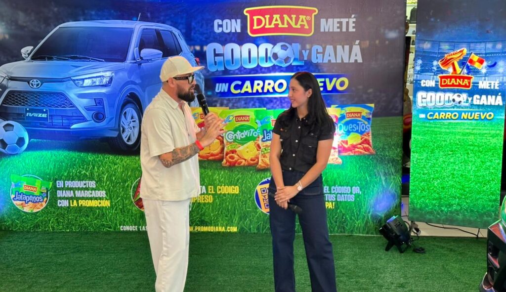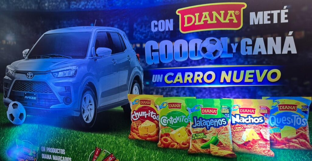 La campaña “Meté gol y ganá con DIANA” está cargada con una gran promoción en la que los salvadoreños podrán ganar premios como vales de combustible en gasolineras PUMA, descuentos en tiendas de conveniencia Super7, mucho producto DIANA y por supuesto el gran premio, un carro Toyota RAIZE totalmente nuevo.