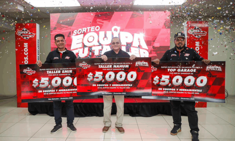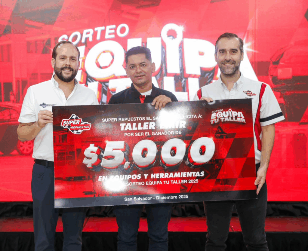 Super Repuestos celebró el cierre del sorteo “Equipa tu Taller 2025”, una iniciativa diseñada para seguir impulsando la superación y el fortalecimiento de los talleres automotrices salvadoreños. Tras varias semanas de participación exclusiva para técnicos automotrices, la empresa dio a conocer a los tres ganadores de esta edición, quienes recibieron US$5,000 en equipos y herramientas especializadas para modernizar sus talleres y potenciar la calidad de sus servicios.