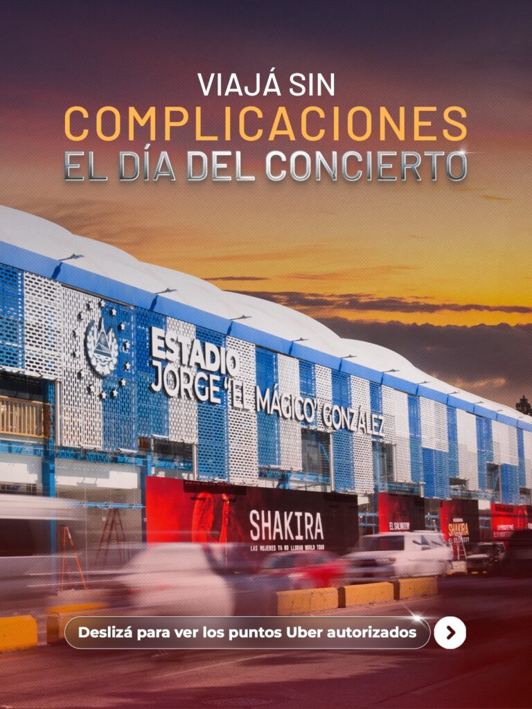 Con el objetivo de facilitar la movilidad y garantizar la seguridad de los asistentes al esperado concierto de Shakira en San Salvador, las autoridades salvadoreñas informaron, a través de redes sociales, los puntos oficiales de abordaje y descenso de la plataforma Uber en los alrededores del Estadio Nacional Jorge “El Mágico” González.