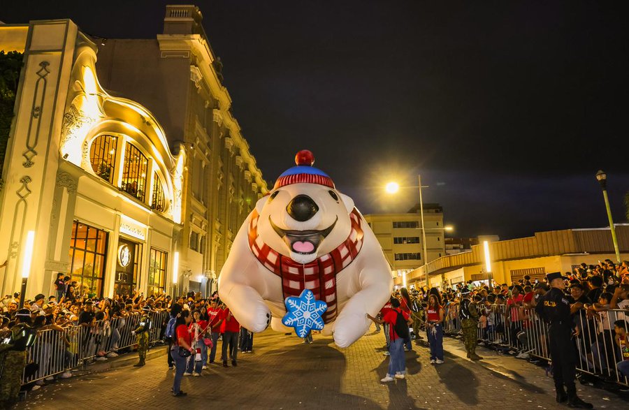 La Caravana Coca-Cola se desarrolló este domingo en el Centro Histórico de San Salvador en un ambiente de orden y tranquilidad, permitiendo que miles de familias disfrutaran de uno de los espectáculos más representativos de la temporada navideña.