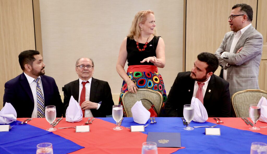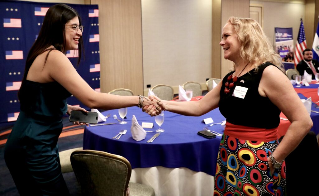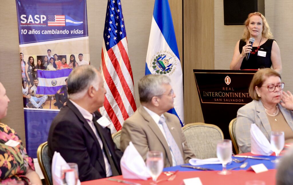 La Encargada de Negocios de la Embajada de los Estados Unidos, Naomi Fellows, participó en un evento para reconocer el trabajo de los socios del Programa de Beca Salvadoreño-Americano (SASP por sus siglas en inglés), una iniciativa que amplía las oportunidades de estudios para jóvenes salvadoreños en los Estados Unidos.
