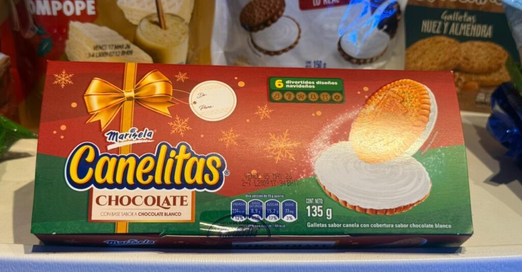 • Canelitas Navidad: galletas con cobertura de chocolate blanco, topping de azúcar y troqueles con diseños navideños, disponibles en cajilla de 135g y presentación individual de 60g.