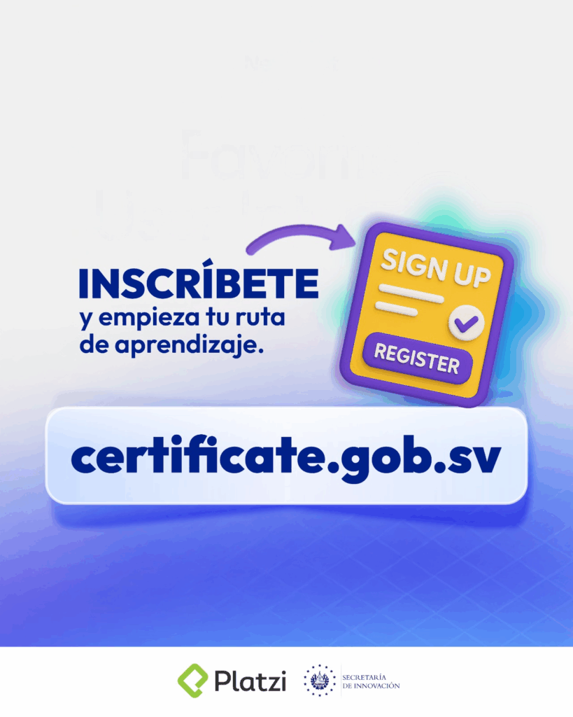 El único requisito para aplicar es ser salvadoreño. Las autoridades invitan a registrarse en diciembre para obtener acceso anticipado y comenzar a formarse de inmediato. El programa está disponible en la plataforma certificate.gob.sv, donde los usuarios pueden iniciar su ruta de aprendizaje y prepararse para un futuro digital y global.