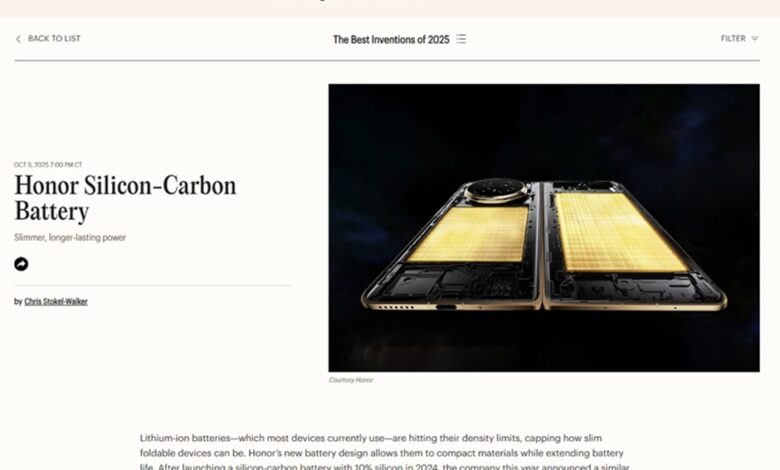 La batería Silicon-Carbon de HONOR es reconocida como una de las mejores invenciones del 2025